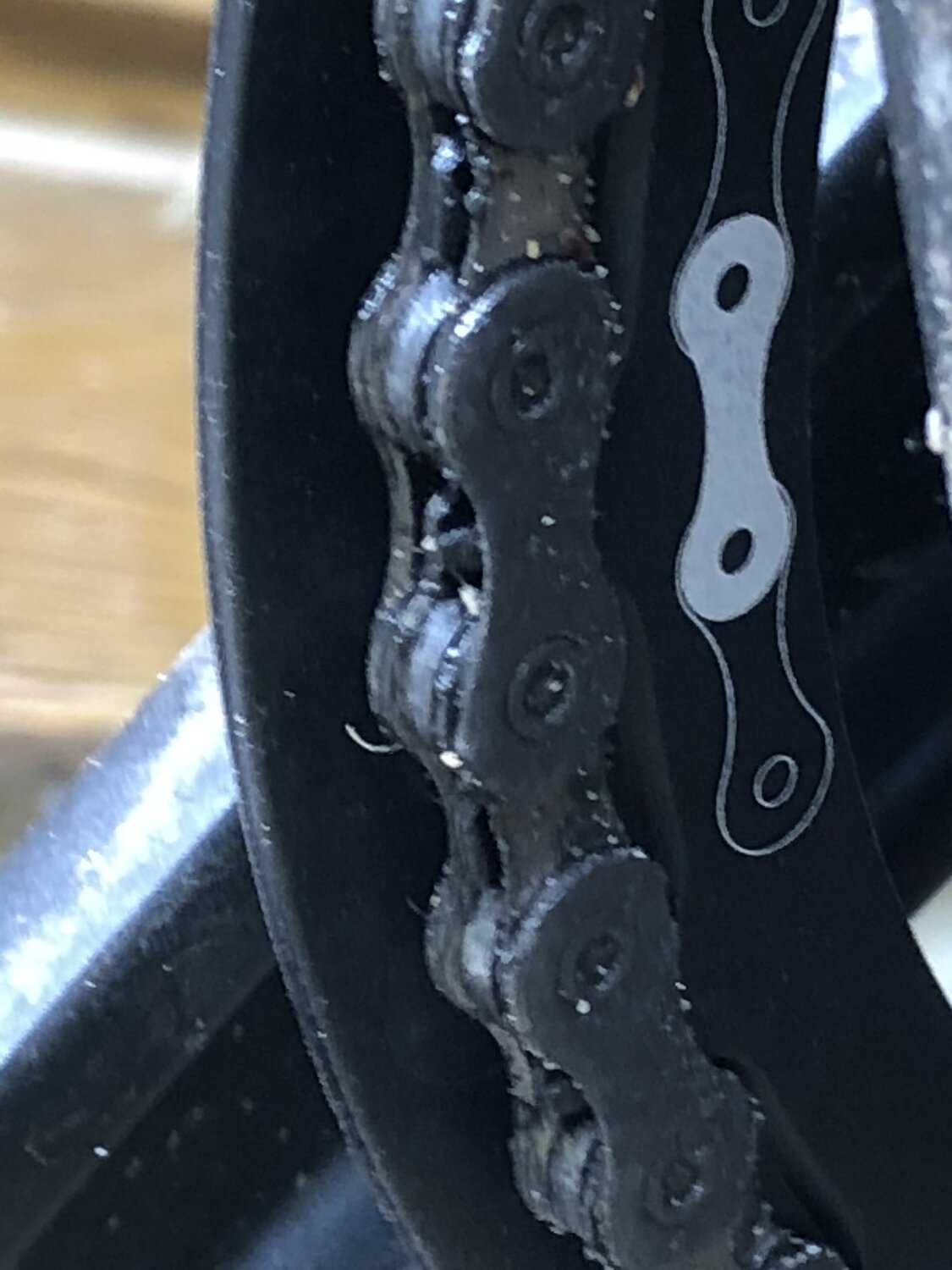 When taking my chain off for cleaning when purchased new, if you get it wrong the chain will ride too high on the crank gear, don't force it on. My first experience with narrow/wide gear.