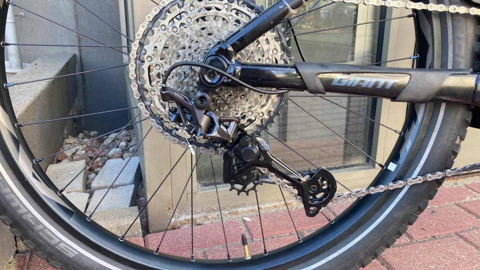12th gear on a 11-50T cassette. The derailleur is not totally horizontal!