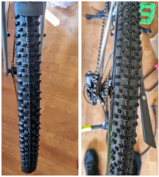 Wednesday morning: Swapped stock tyres with Schwalbe Smart Sam 37-622. I need to be able to ride on forest paths, too!