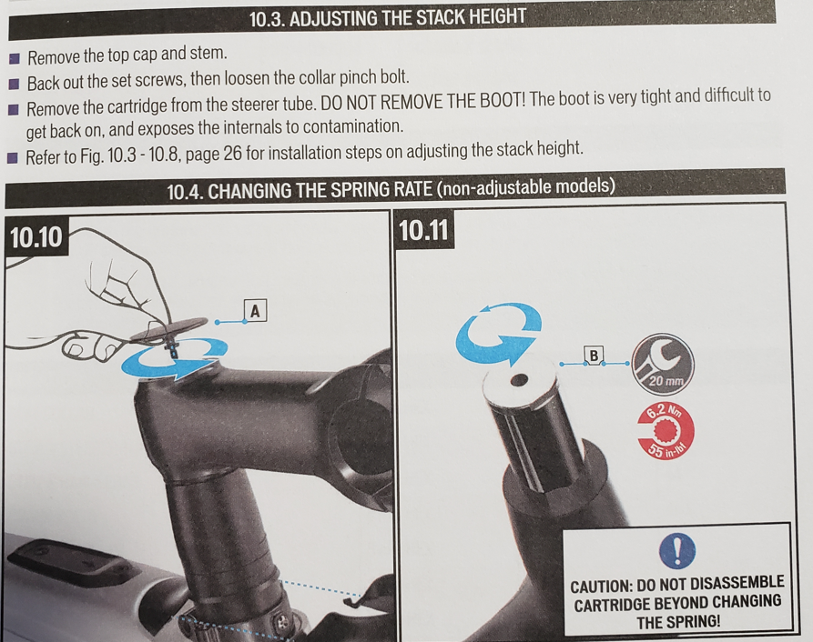 I think your instructions are for an adjustable Future Shock? Mine is not adjustable. Just a flat cap, pretty much flush with the top of the stem mount. I'm not sure I understand figure 10.10. Is this finger-loosened after the stem is loosened? And then finger-tightened before the stem is clamped onto the steerer?