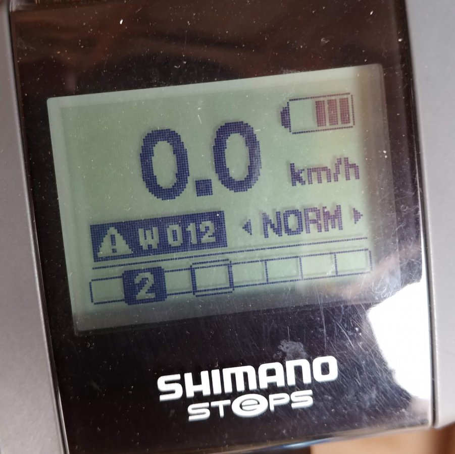 The Shimano tech said "we've seen a lot of these (W012 error codes) and they're often on custom recumbent frames." The motor units are apparently sensitive to orientation. I mentioned my bike also had an aftermarket suspension fork installed which jacked up the front end a few inches, further increasing "tilt" of the motor.