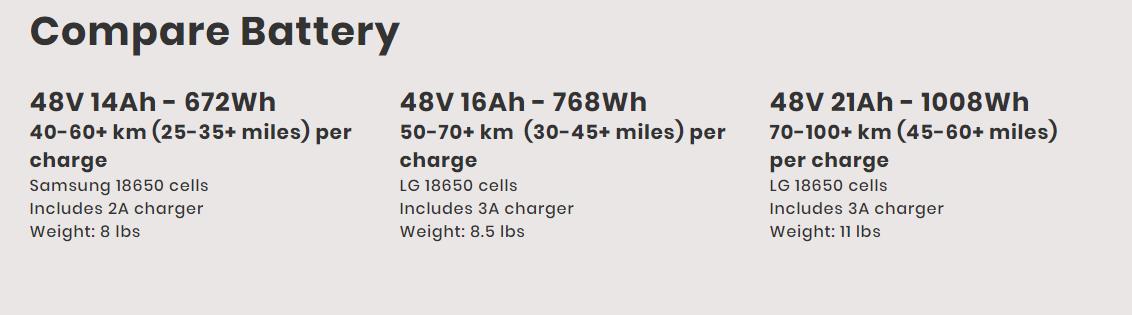 The Juggernaut has a 1008Whr battery that weighs 11 lbs with estimated 70-100 km per charge (estimated recharging of 80% in 2 hours). I would like to travel Edmonton to Calgary (about 300 km). With the Juggernaut, this trip could potentially be done with 2 batteries and 2 chargers with one stop halfway.
