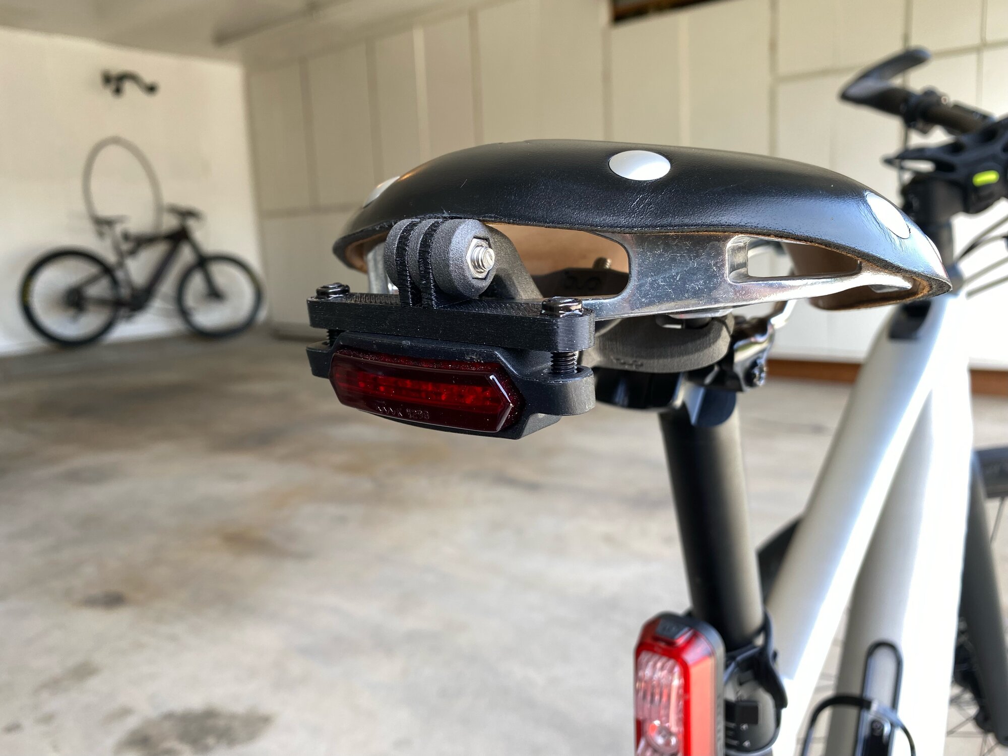 I had a 3D file created for an adapter that would mount the SWAT rear light (or any SWAT mount item) to any Go Pro compatible seat rail mount. You can search Amazon for mounts, I chose the Bup Labs Anatra Universal Saddle Seat Mount.
