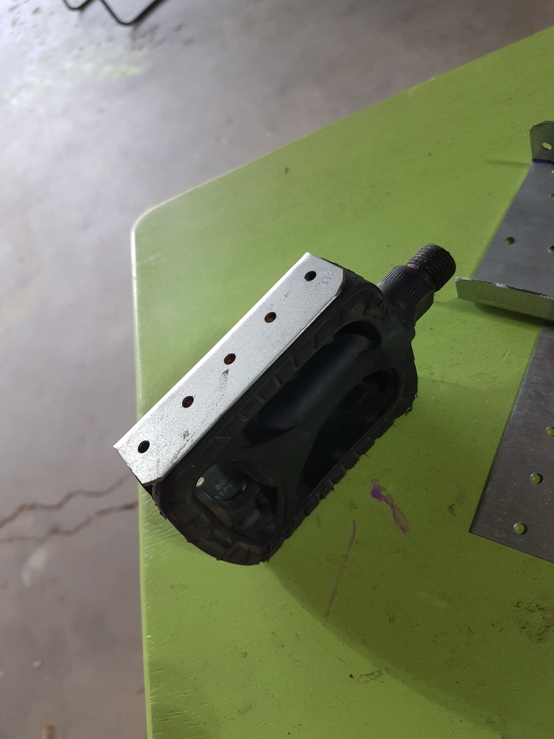 Custom pedal for left side - drop foot has her slipping off pedal.
