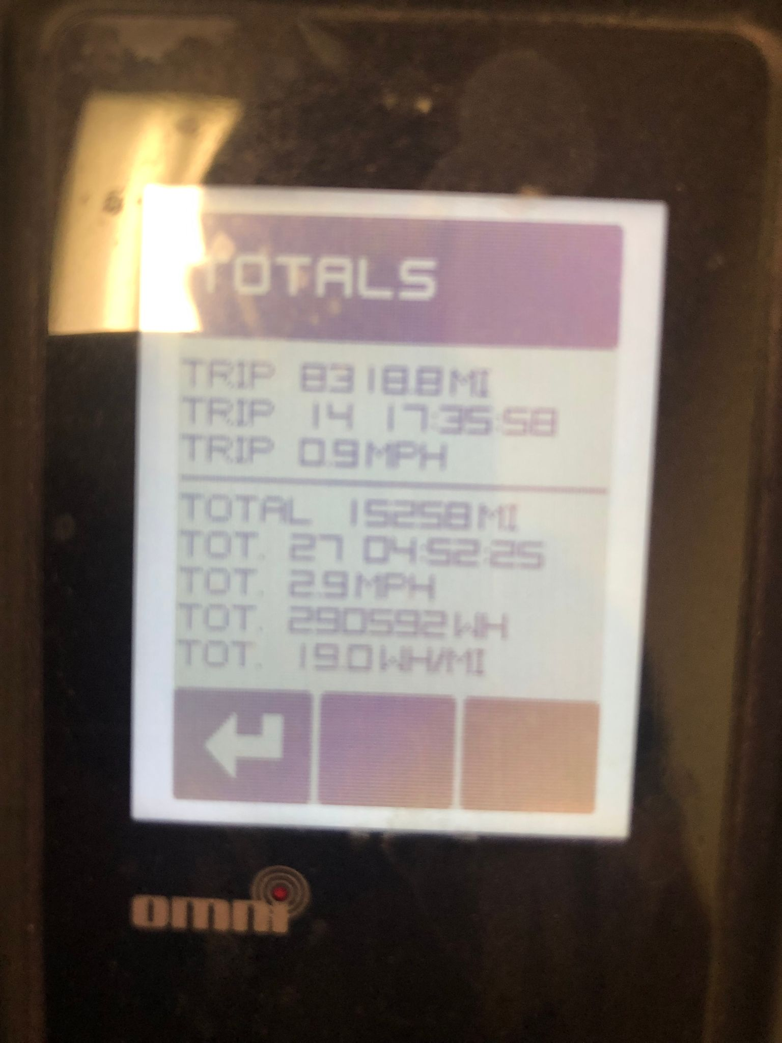 My Stromer ST2 has 15,264 miles according to Strava, and 15,258 miles according to its own odometer. The on-board computer says it has used 290,592WH, at an average of 19.0WH/MI. To give context, this year it has averaged 23.6mph (says Strava), not that I ride it for ave speed, I slow way down for people on sidewalks and things like waiting on lights to change green, otherwise it'd be probably over 26mph.