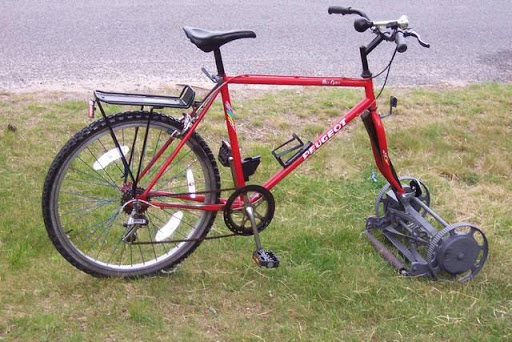 Honestly there are strains of grass that only need an annual mowing, maybe twice a year in rainy Pennsylvania. People just like to mow, instead of doing something useful, like riding a bike.That's an idea: a rotary mower unit that you tow along behind your ebike...