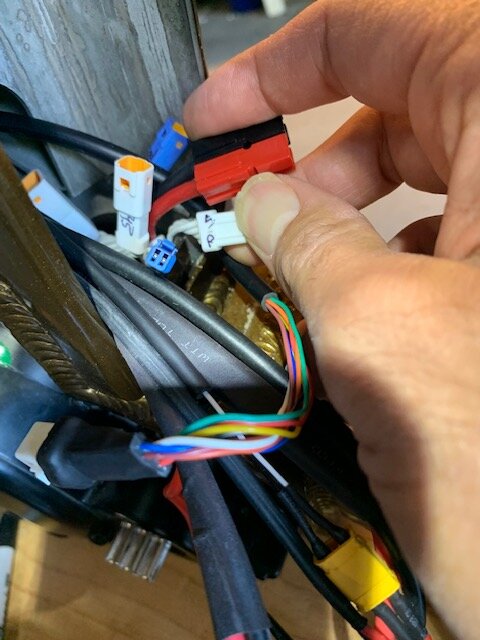 I stated to pull my motor for the second time and found out that the battery power cables had a thin wire soldered to the connection battery plug and I could not find out where this thin elect cable went to or attached etc. (Pulled the top battery connection, 4 pin plug to see the wiring.)