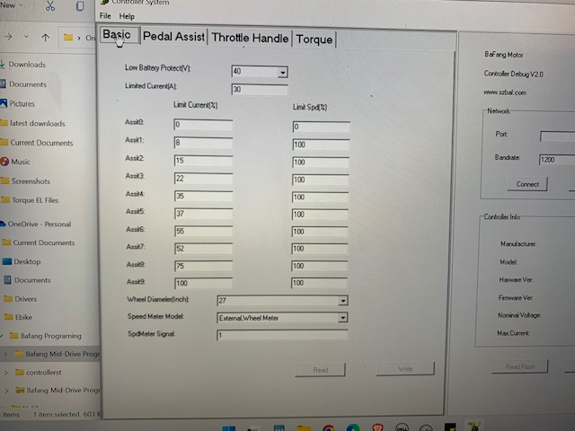 Alright, I purchased a Bafang cable and connected to the controller. Here were my settings. Of note, my low battery cutoff is set to 41V. I'm not certain if I'm in the "bike dies at 46v camp" because I don't think I've taken any rides long enough yet, but now I absolutely need to do a range...