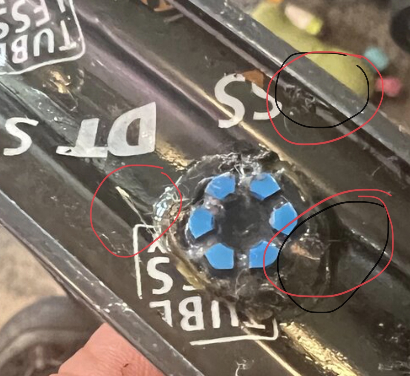 eg is that a scratch in the tape ( left red circle)