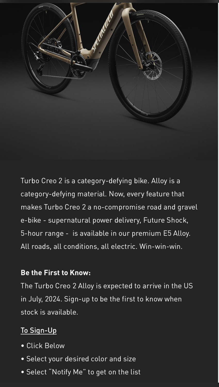 Welp, for anyone interested in this bike, I have this to report. I finally emailed my local Specialized dealer who said that the tan is already "oversold" (not sure if to individuals or bike shops, since it never showed any availability online). The black will be available in September. I don't like that color, am not sure about the Apex mechanical shifters, nor even if the bike will fit me, so I am pretty much ruling this one out. Looks like I may be heading into the custom Zinn after all, even though it will be a lot more spendy. There just aren't many options at my size, and I have looked at them all, I think, and come up empty-handed.