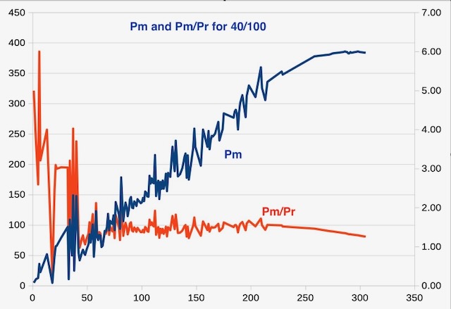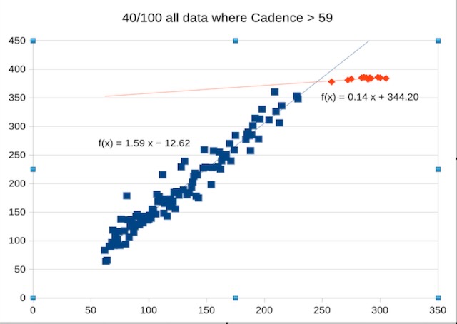 Here's the individual chart for 40/100 with all records where Cadence and Pm and Pr are >0