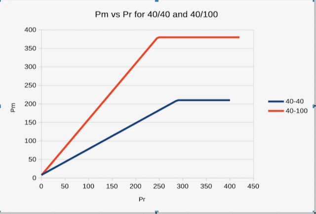 Based on Spec documentation at the time, my simple Pm(Pr) model assumed (a) that Pm ramp slope S depends only on the E in assist mode E/M, and (b) that post-saturation Pm varies only with M and is hence flat in Pr.