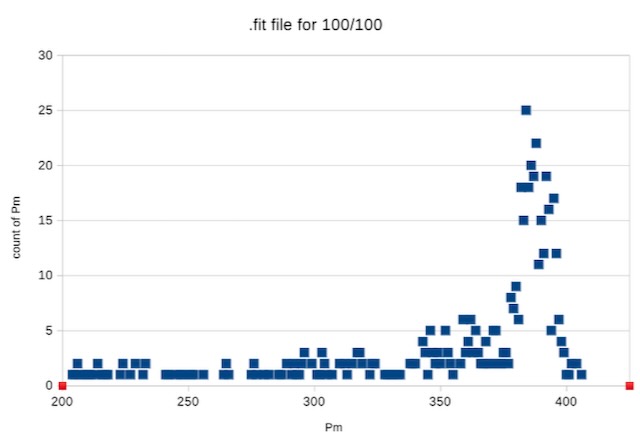 My 100/100 .fit file has 570 records, Here's a chart showing the frequency of each Pm data point