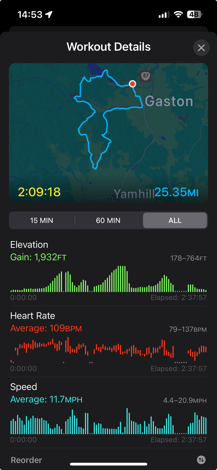 I checked the Specialized range calculator and I get 57 miles for 4554 ft elevation gain.