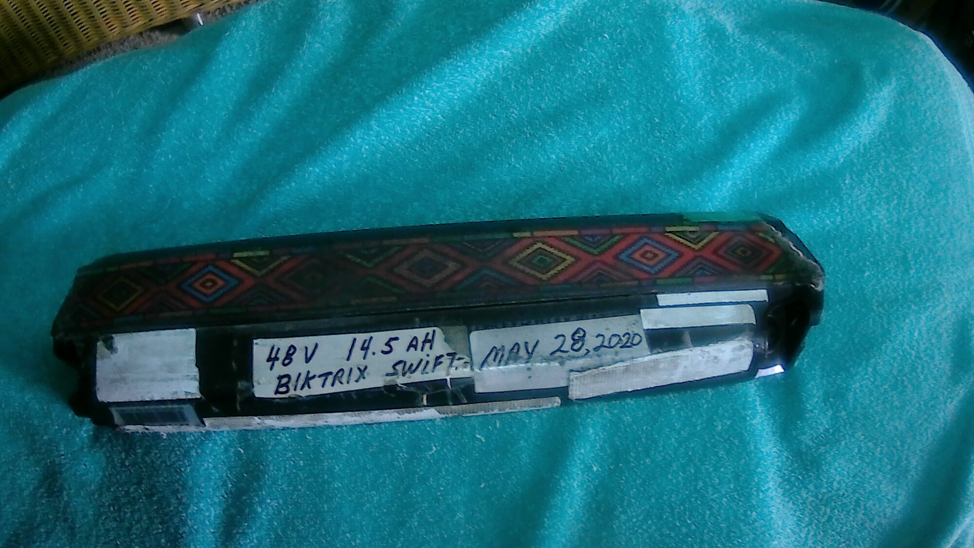 1. the aforementioned 48v/14.5ah(14.5 gallon) item that was original equipment on my peas-o-chit 2020 BikTrix SWIFT ebike. It's “born on” date was May 28, 2020 (38 months ago).
