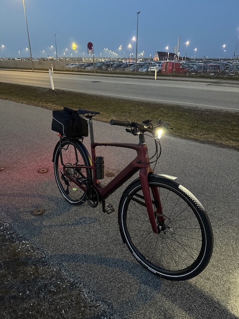 I seemed to be a long wait since the bike already had arrived at the dealer a week ago (bought it online but chose it to be delivered to a dealer for asembly) . But they said they are too busy, some people ill, bike at their external warehouse... Anyway they said it should be ready today. Then When I phoned them today they said they get the bike form the external warehouse and it is likely ready today. As it takes an hour travelling there, I took a chance. Arrived one hour before the shop closed. The bike was in the entrance area, looked assembled except for the pedals. They said they would have SMSed me and it is still not ready. I got them to make it ready to me nevertheless. Can't travel there everyday. Also need to work and and visit clients. So they did run an update and together with the mechanic I registered the bike. Bike was only charged 20%, so I asked them to plug it in to get some more charge while preparing it. Anyway I realised I would not have enough charge to pedal the 46 km home with that but luckily there is a train station nearby.