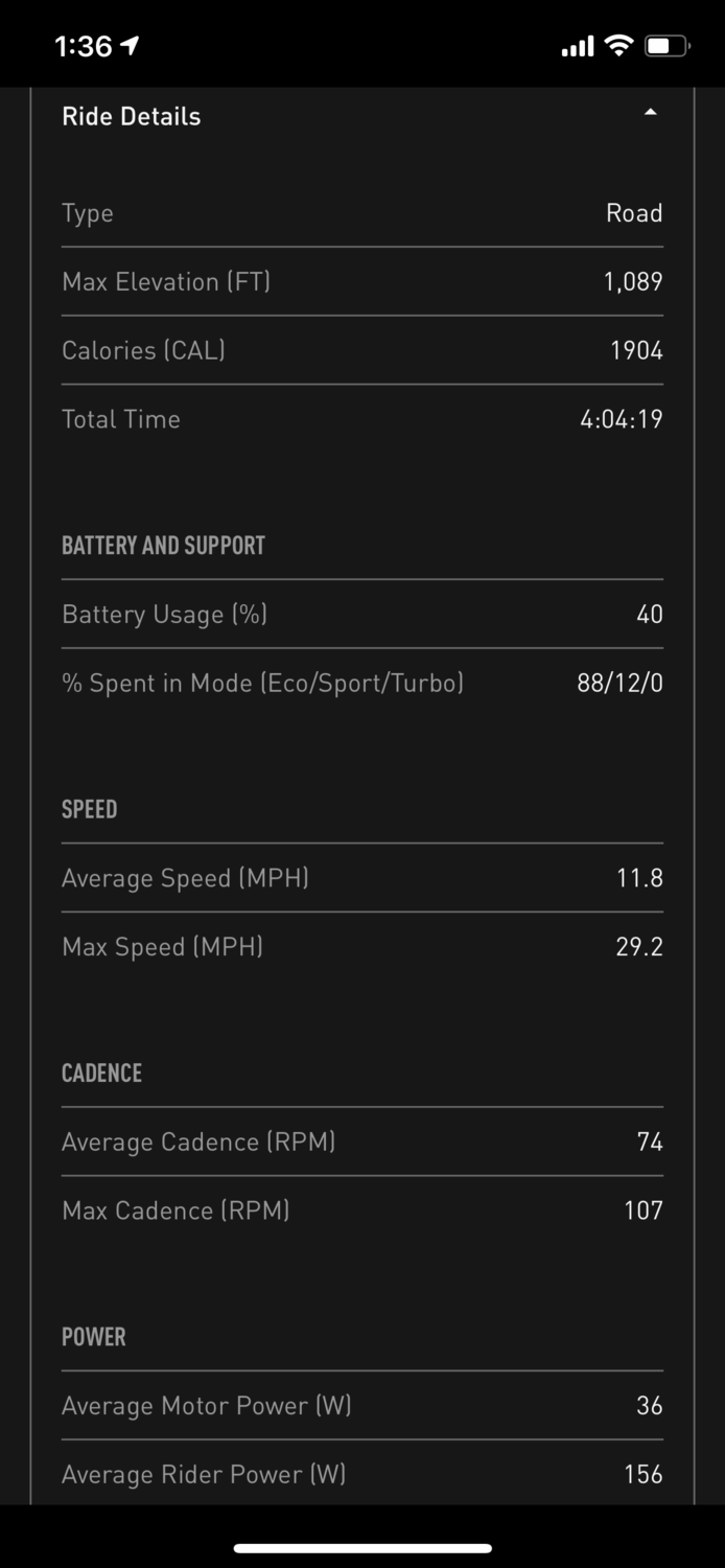 Can you ask for more information on your ride? The thing even knows how many times you changed the assistance level. The ride map tells you even more!