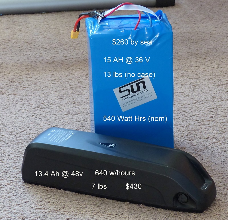 I think batteries are the critical component on an ebike. With a kit, there are more options. Since a nice BBS02, Golden, or MAC motor can be had for around $300 -$500, what battery can you get for under $500, to keep the thing around $1000? If you have a bike to convert, or can dig something up, the final price can be very low. But I think you end up with an extremely capable bike for a great price: