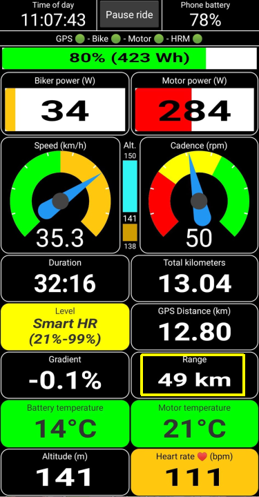 As none of my Turbo e-bikes has the Mastermind, I use BLEvo for calculating the Range (it is very accurate). I ride with the smartphone (running BLEvo) in my backpocket. I check the Range only occasionally, that is, during my stops.