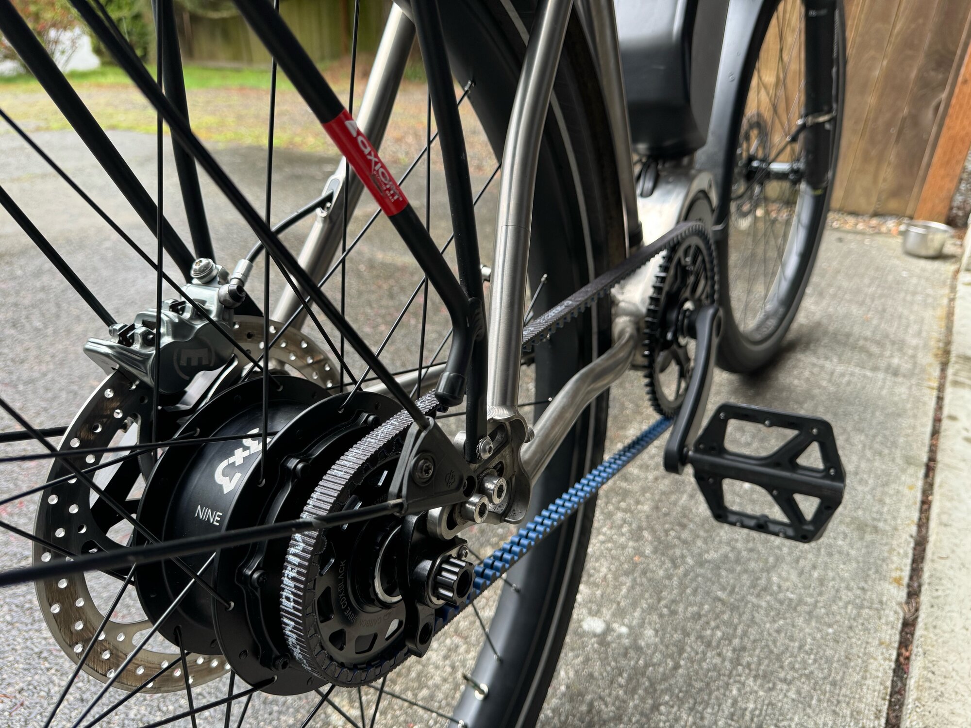 On most bikes a smaller chainring would be fine, but the chain cross in the smallest cogs (11 & 13) is horrendous, so I'm trying to get my cruising speed (20mph) with the chain sitting in the 4th or 5th rear cog.