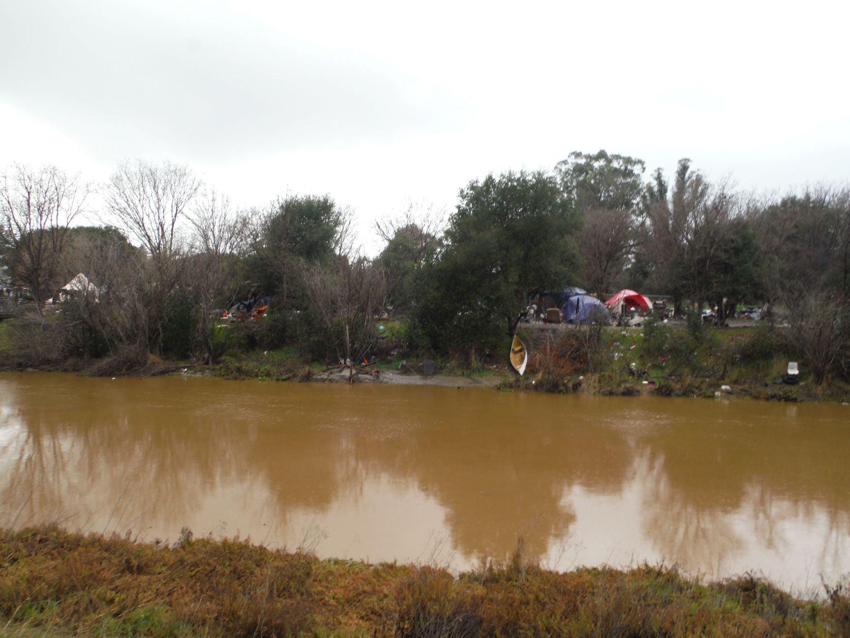 I was just out watching our river. The upper Petaluma River is at 9.5 feet. I predict that at high tide, 5AM Wednesday it will go over its banks. It is going to take out a large homeless encampment on the banks. The water looks angry. White foam is on the mocha rushing water. We are expecting major rains with 50 mph winds after midnight for two days. Those people are living in tens in a mud pit. Just NW of here another river, the Russian, is already flooding the town of Guerneville. Entire vineyards are currently flooded, a dozen roads were closed today and some schools. Let's hope the forecasts are wrong.