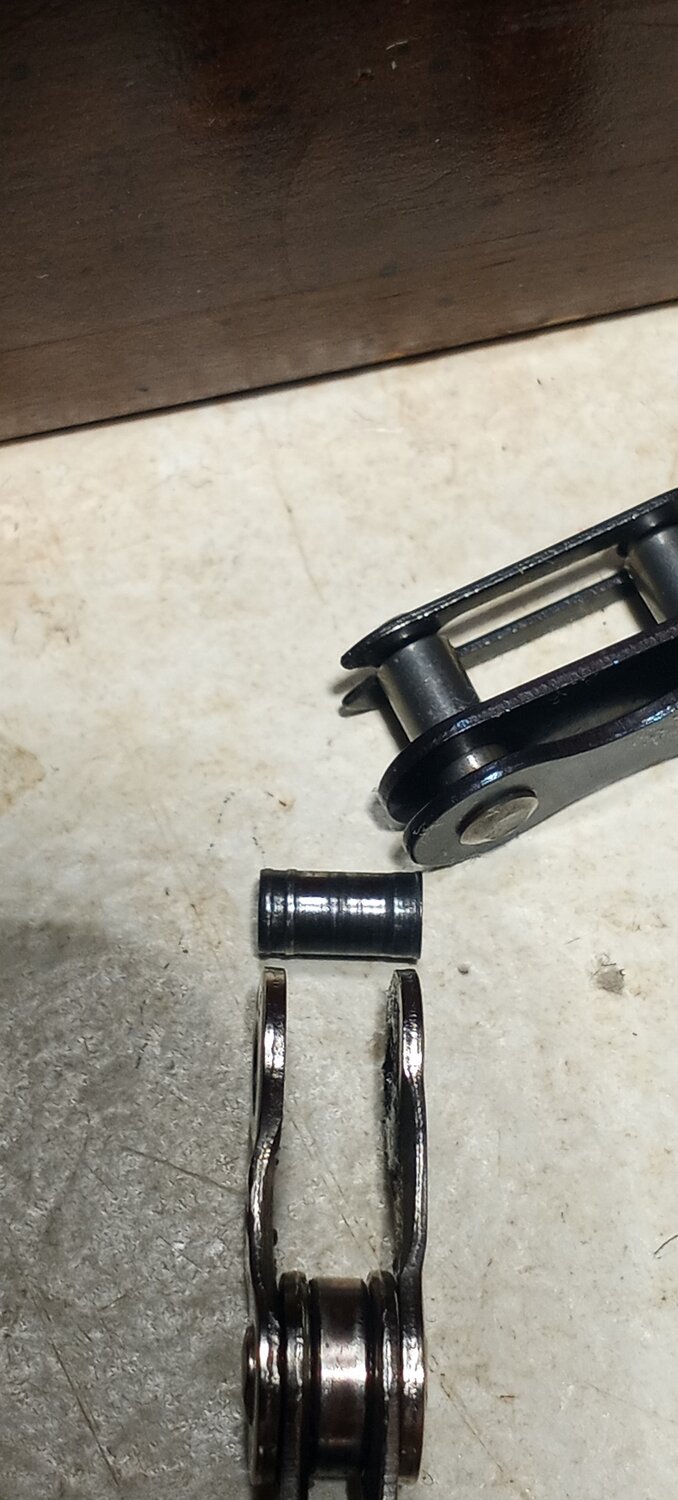 I did press it in just enough to clear the outer link and went to rotate that link out of the way and it wouldn't budge. I put pliers on it to try and rotate it and nothing. I thought it must be connected to the outer link on the other side, so I just kept pushing on the pin. I figured that I could push it to the other side until it clicked into the outer link, but there was still a lip in the way and I couldn't get the inner link out, so I just pushed the link onto the train tracks. lol