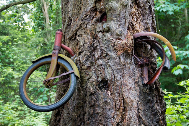My forester eyes say there's a bit of a volume deduction in that tree. It'll have to be long butted.How is this for an "other" category? Betcha didn't know that bicycles grow on trees! Just have to pick them right away when they ripen or the tree swallows them back up.