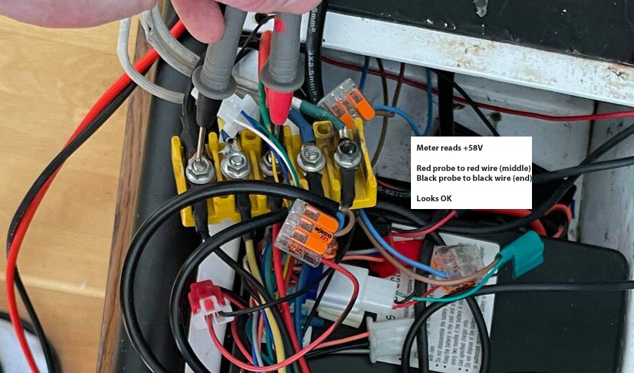 Finally and this just occurred to me, if this is a 14S lithium battery, i.e, 58.6V, it's already fully charged (your picture shows 58.46) and the charger won't charge anyway.