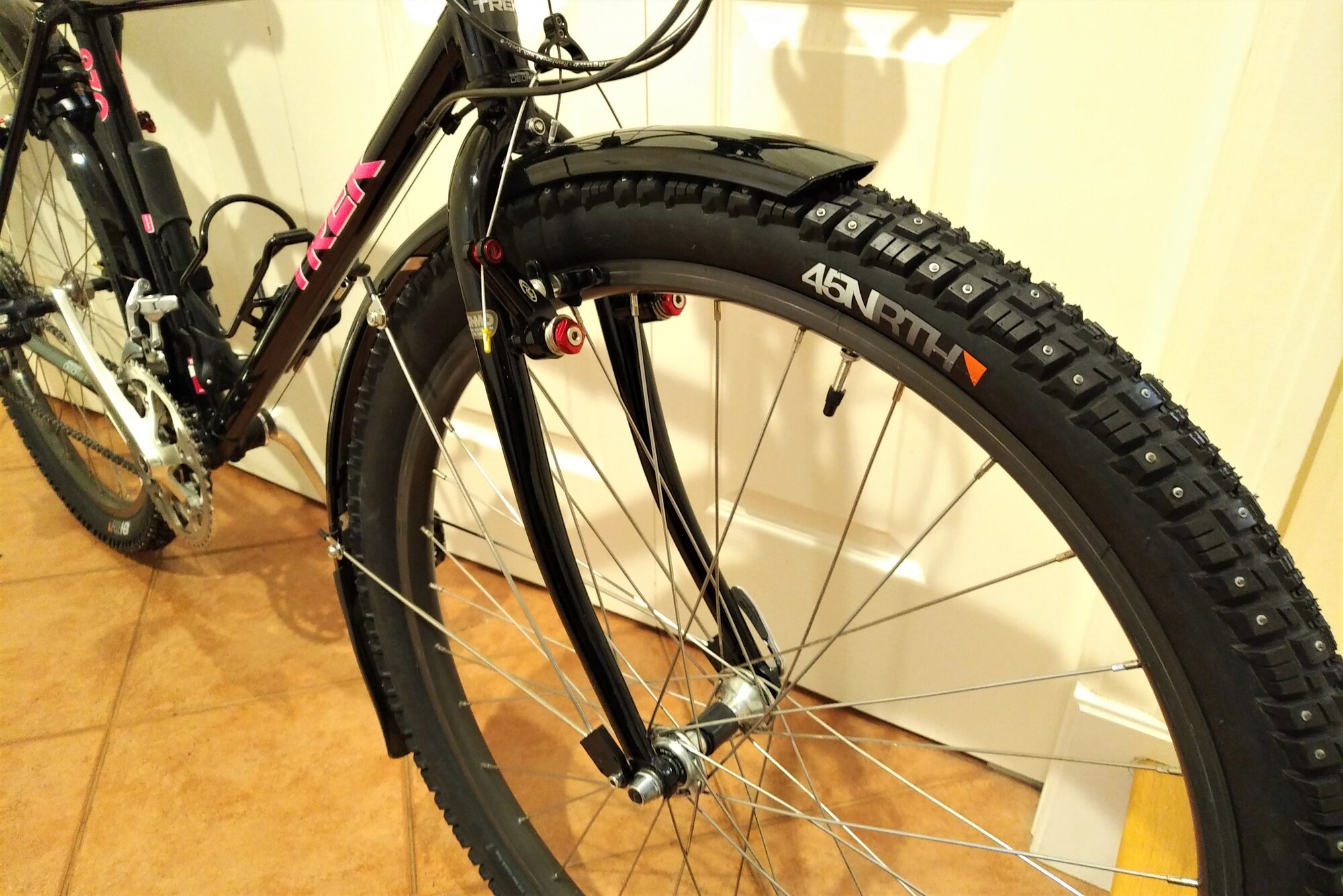 I recently purchased a Giro 9 winter helmet on clearance at 50% off at my local Sportchek. It has a brushed fleece liner and removable earpads which I’ll be wearing it over a merino balaclava. The helmet allows me to vary the level of ventilation via a slider control on top of the helmet. Also shod my winter ride with a set of studded Gravdals. Should see me through over the next 5-6 months.