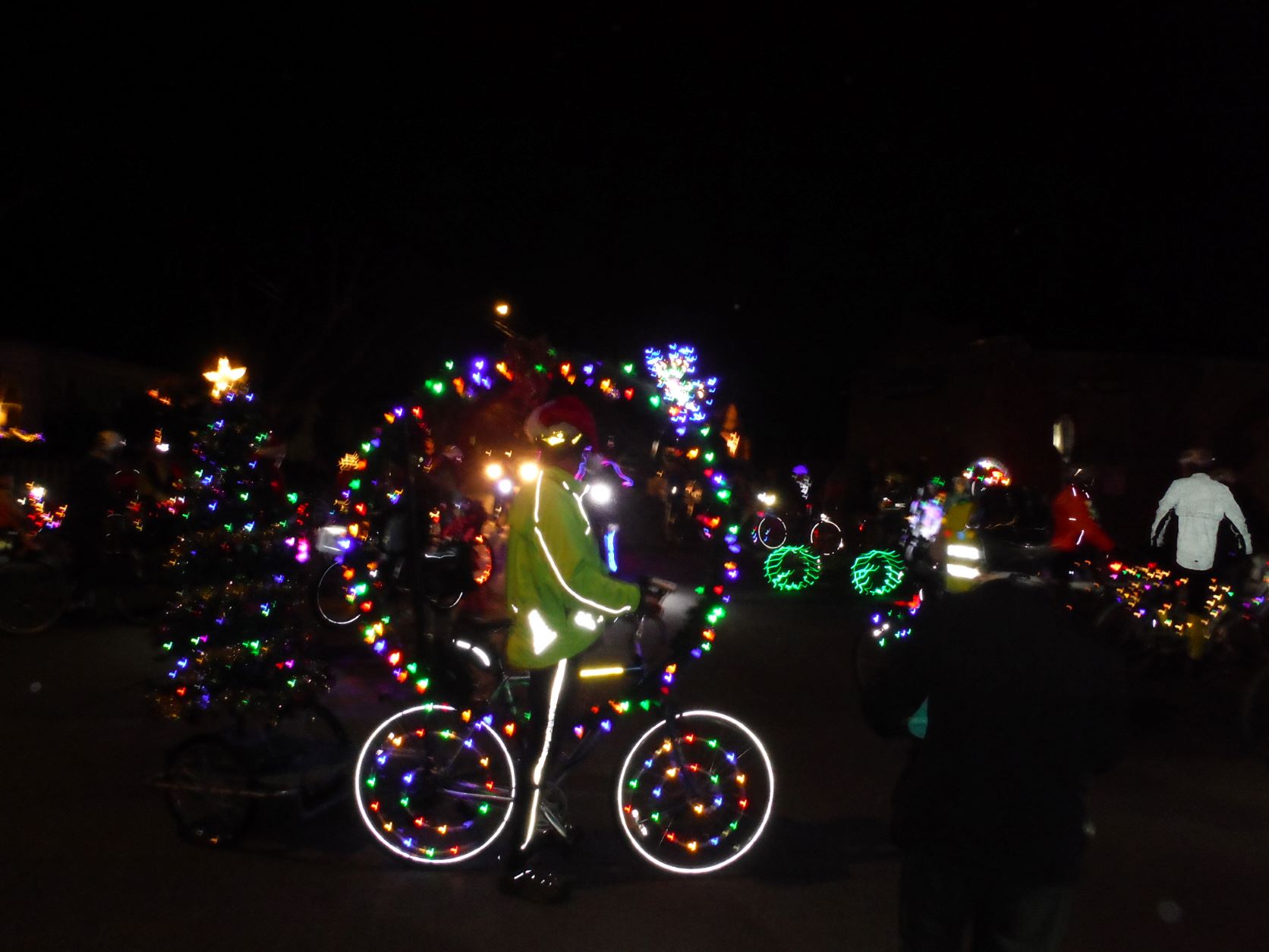 Tonight's lighted bike parade was a blast. At 175 strong we took over streets and intersections. There was even a lowrider contingent from a near by town. People of all ages had decorated their bikes. Lots of people took videos which will be edited and posted over the weekend. This guy had a tree in a trailer. We were chasing away Winter's grip with light and togetherness. In one week the days will become longer.