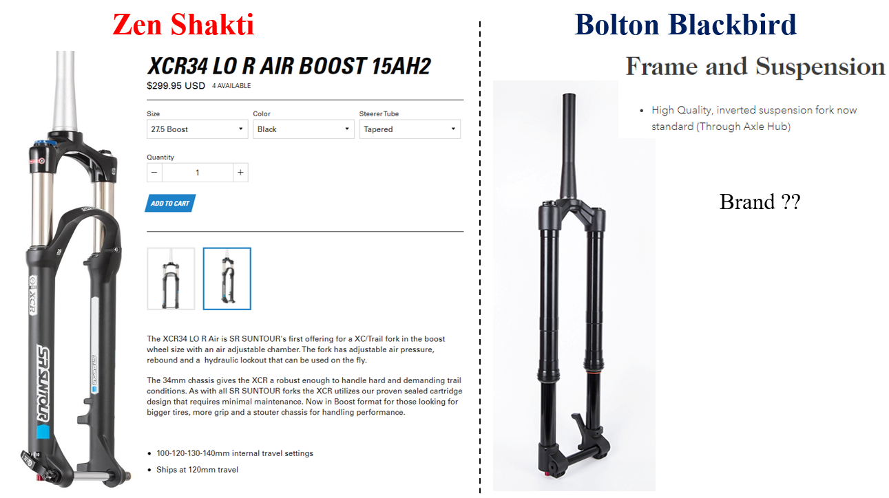 I could not find the name of the suspension on the Bolton bike. We are using XCR 34 suspension with an adjustable AIR chamber and Boost hub.